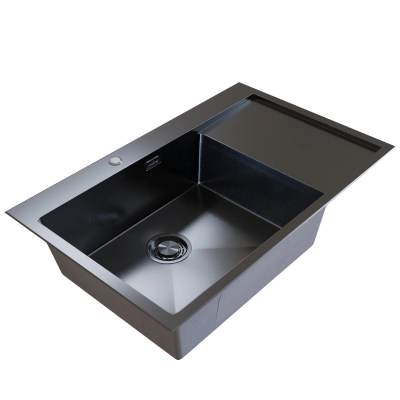Мойка настол. монтаж 60х50 (3,0) прав. вып 3 1/2 MIXLINE PRO с ФАСКОЙ 20см с сифоном (черный графит)
