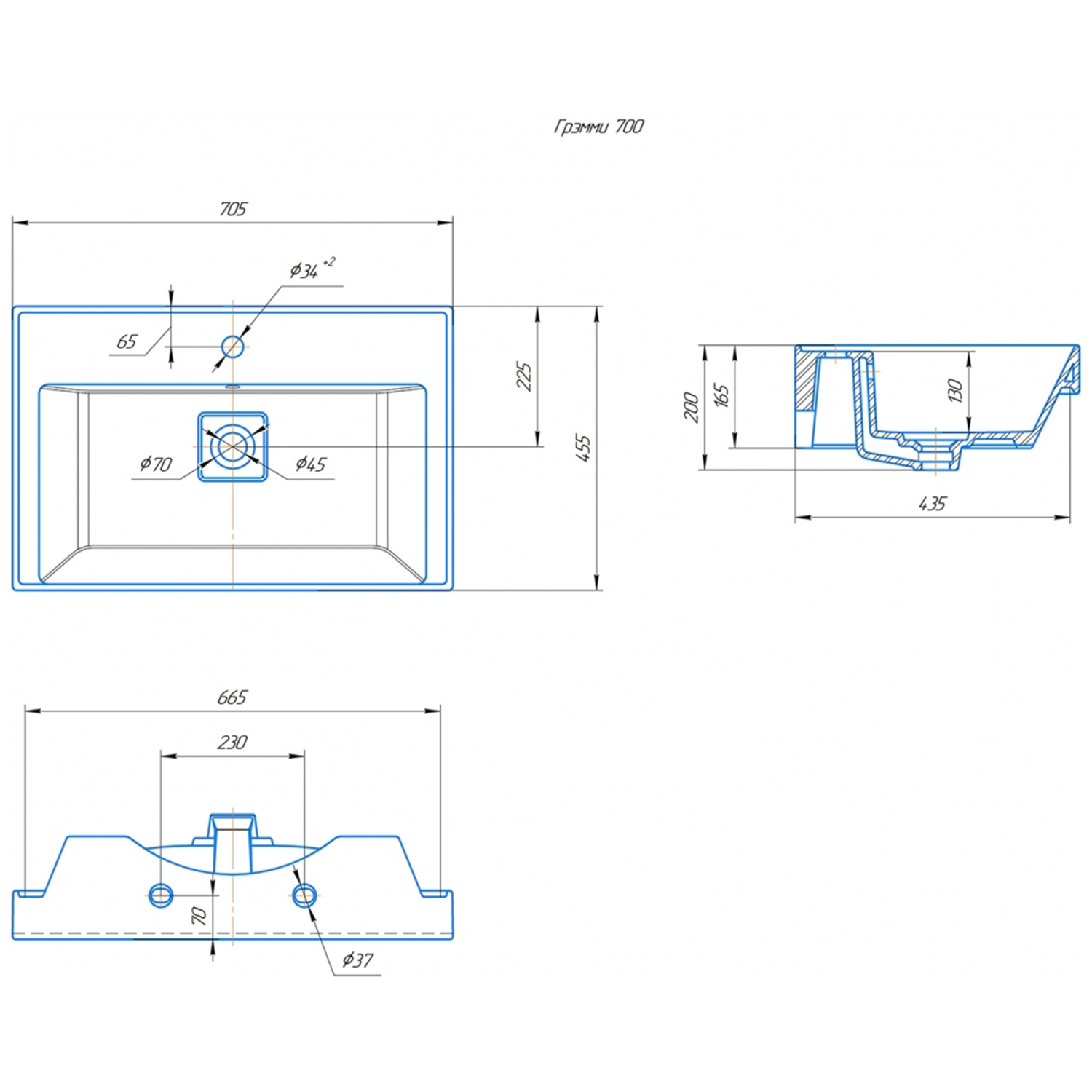 Раковина накладная "Гремми" 700 белый (Valleri)
