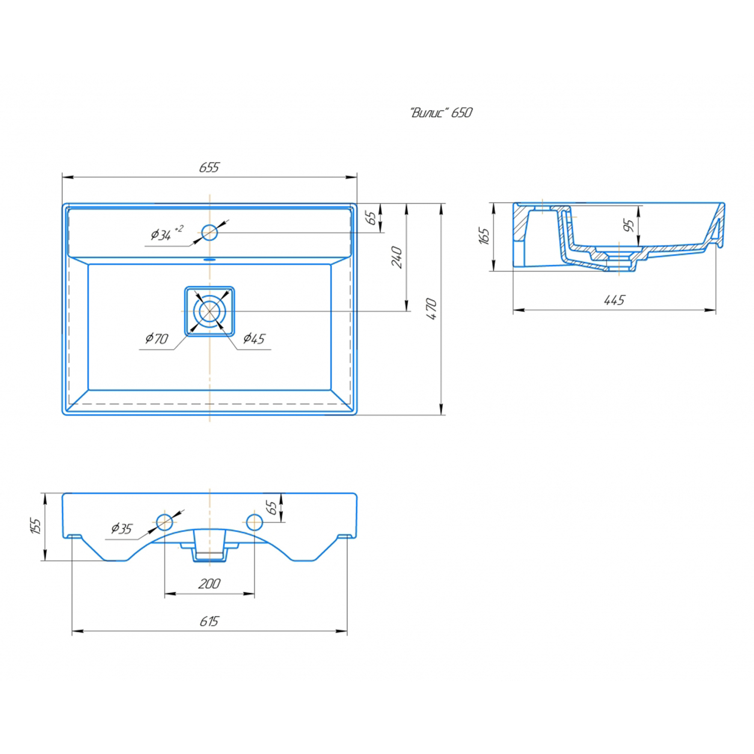 Раковина накладная "Вилис" 650 белый (Valleri)