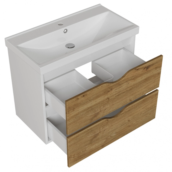 Серия мебели для ванной «АМУР» от бренда MIXLINE – это функциональное и современное решение для организации пространства. Модели выполнены в актуальном цветовом решении: снаружи – белый/дуб Секвойя, внутри – белый. Фасады из МДФ с глянцевым покрытием пленкой ПВХ устойчивы к влаге и легко очищаются. Корпус изготовлен из влагостойкой ЛДСП, что обеспечивает долговечность. Мебель поставляется в собранном виде.